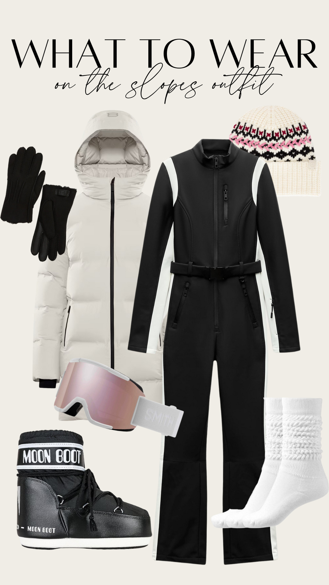Stay warm and functional while skiing or snowboarding. Moon boots are a must to keep warm and this is my favorite waterproof puffer jacket.